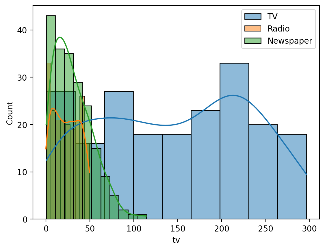 Model: \(\text{sales} \sim \text{tv + radio + newspaper}\)