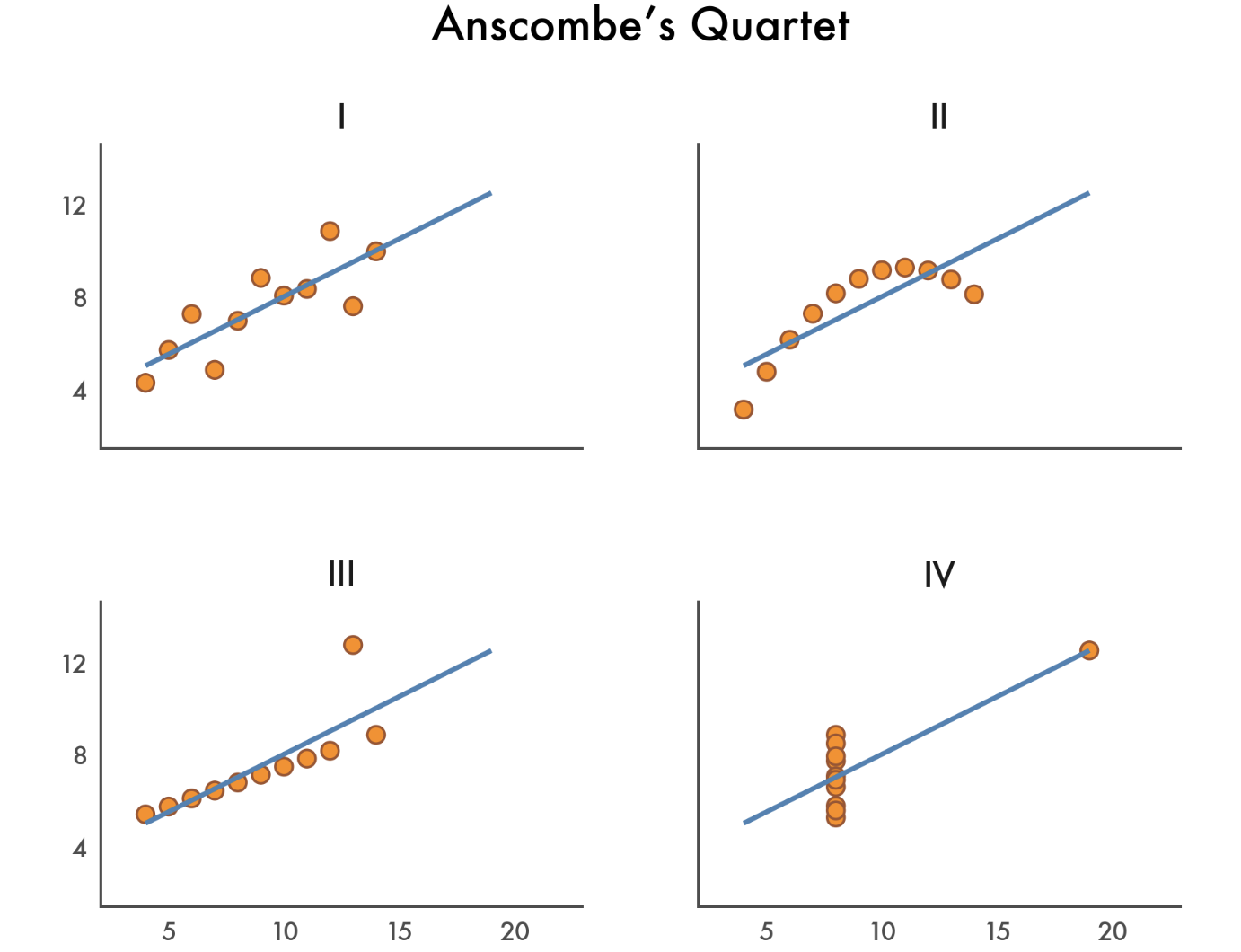 ansplotText(0.5, 0.98, "Anscombe's Quartet")