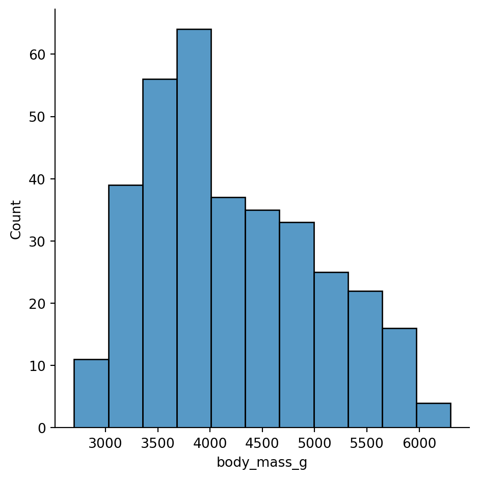 displot()Use sns.displot() when you want to understand the distribution of a variable - how values are spread out, where they cluster, whether there are outliers.