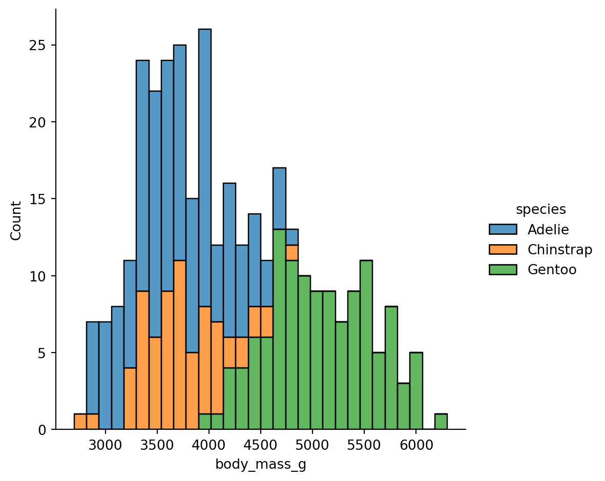 *Note: we’re NOT using seaborn’s “Objects interface” which is even more like ggplot, but still has a several rough edges that we wanted to avoid for the purposes of this class.