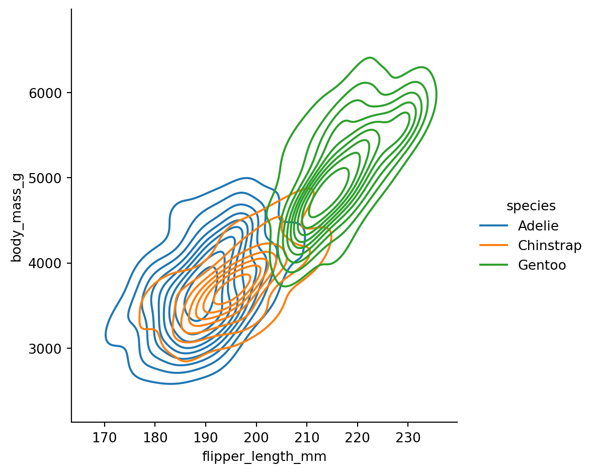 | Density | sns.kdeplot() or displot(kind="kde") |