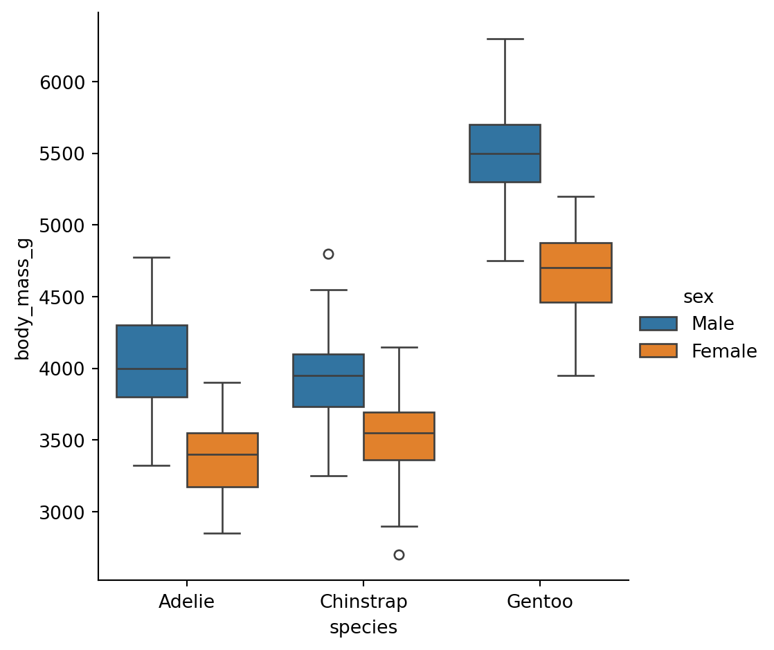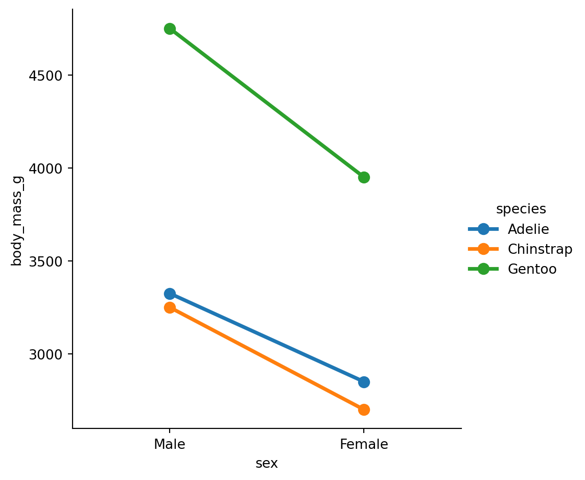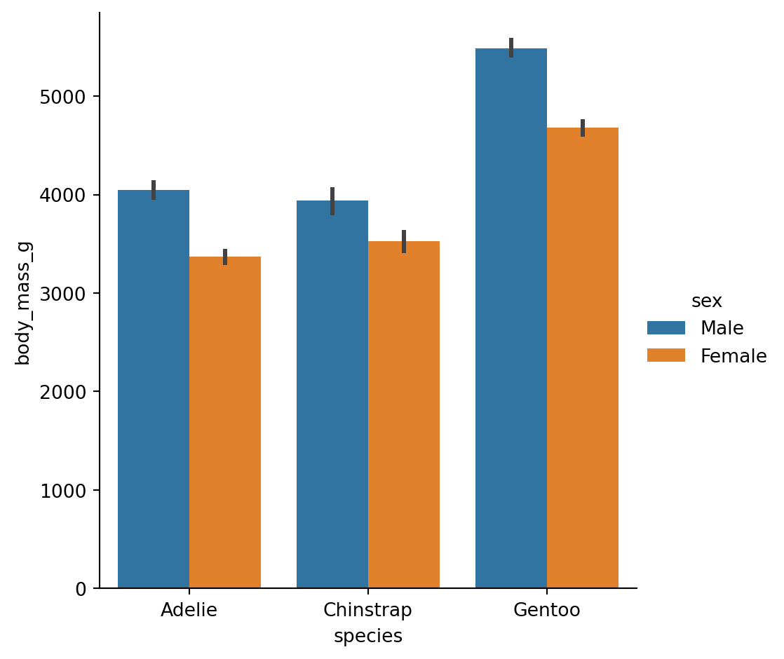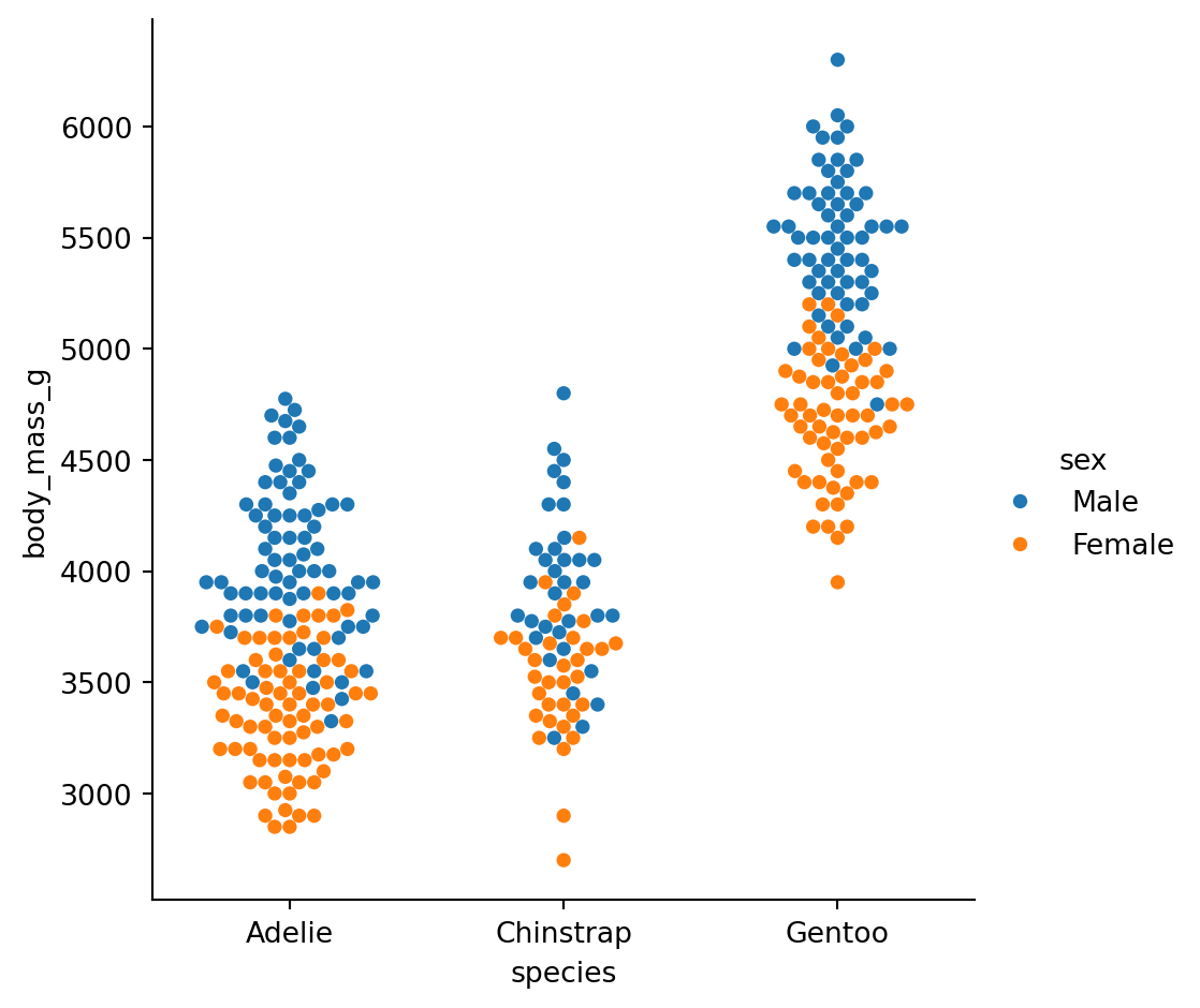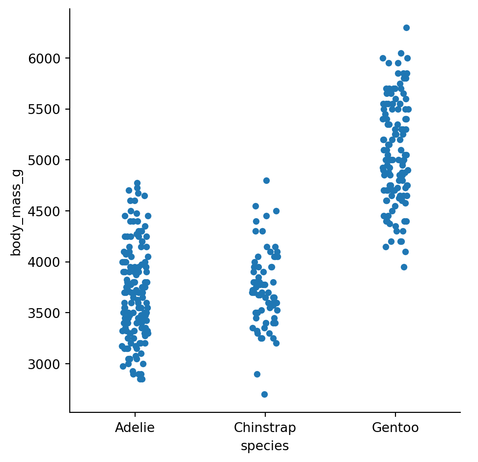 catplot()Use sns.catplot() when one of your variables is categorical (like species, sex, or experimental condition).